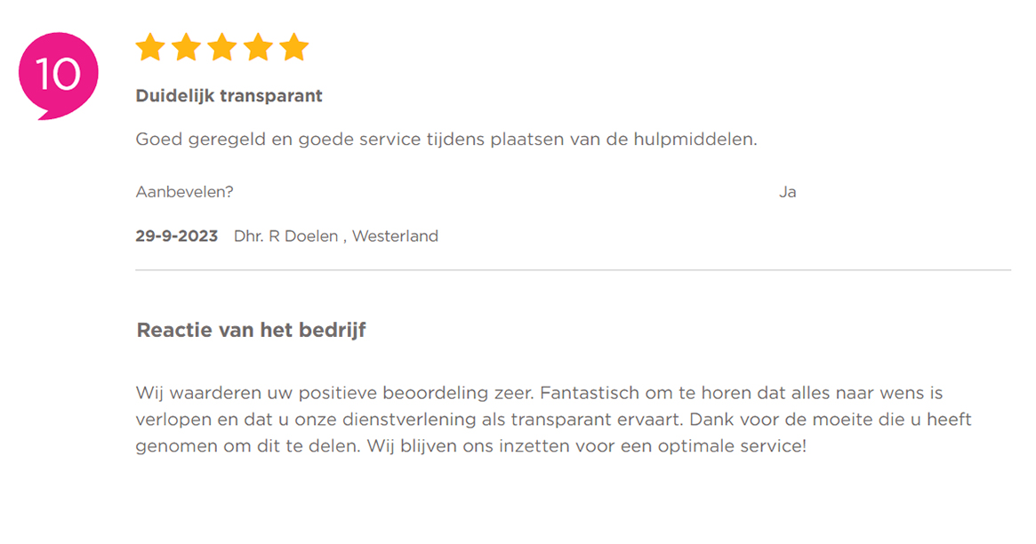 De beoordelingen op klantenvertellen.nl voor Medicura worden automatisch behandeld door AI, ongeacht of ze positief of negatief zijn. De AI is in staat om nauwkeurige reacties te genereren en kan indien nodig de hulp van een medewerker inschakelen, zoals bij negatieve beoordelingen die eerder zijn gemeld.